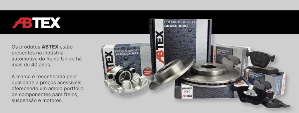 Os produtos na marca ABTEX estão presentes na indústria automotiva do Reino Unido há mais de 40 anos. Marca é reconhecida pela qualidade a preços acessíveis, oferecendo um amplo portfólio de componentes para freios, suspensão e motores para o mercado de reposição. Confira as principais linhas de produtos da marca: